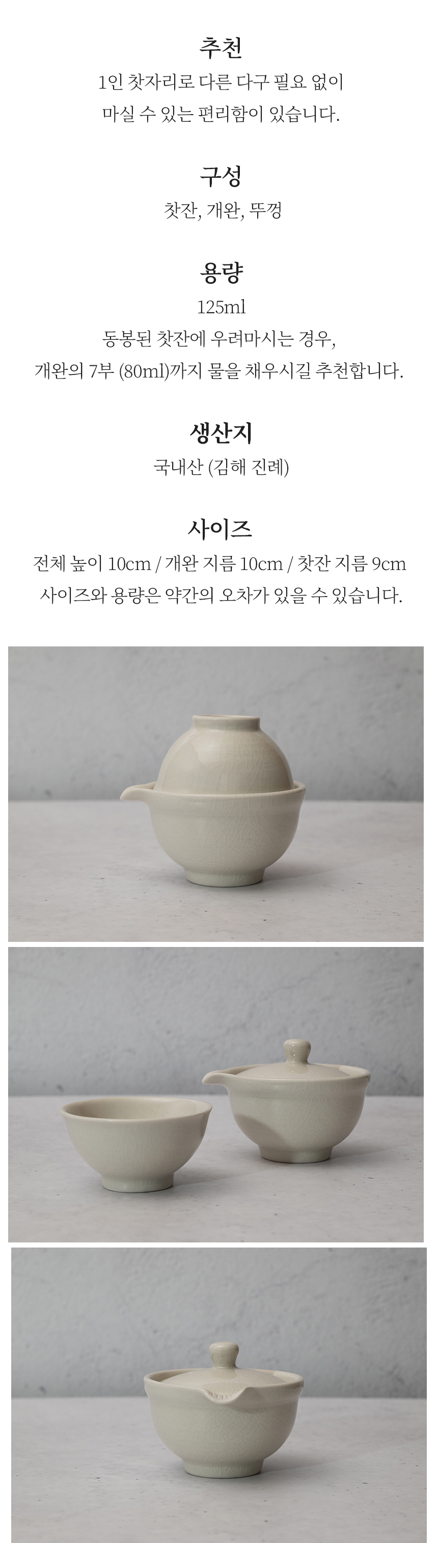 [일구다] 1인 다기 백자 국내산 쾌객배