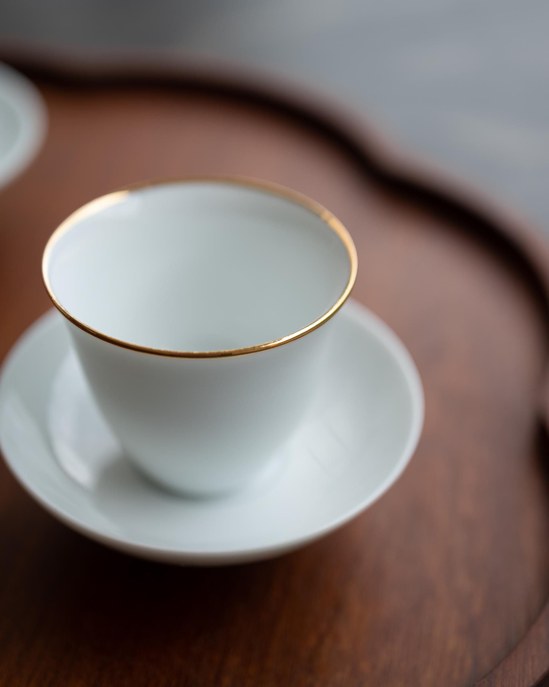백자 찻잔에 금색 띠가 포인트가 됩니다.