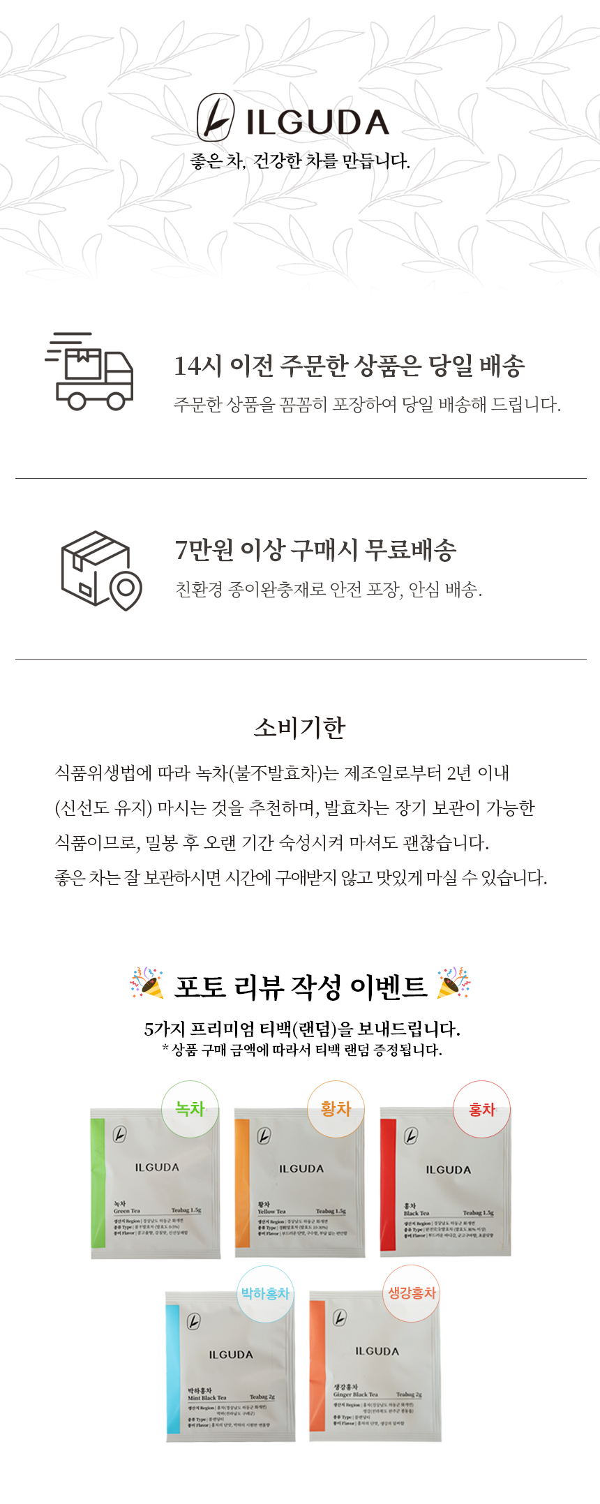 [일구다] 2호 선물세트 (1인 다기 백자 국내산 쾌객배 + 전통차) 쇼핑백동봉